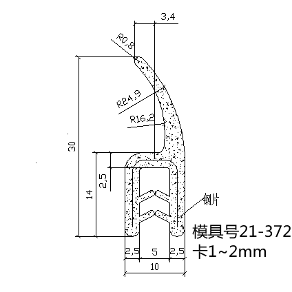 此(ci)款密(mi)(mi)封條由三元乙丙橡膠(EPDM)材料密(mi)(mi)實擠(ji)出(chu),內含獨特的金屬夾(jia)具(ju)和(he)舌形扣,俗(su)稱(cheng)骨(gu)架密(mi)(mi)封條。
